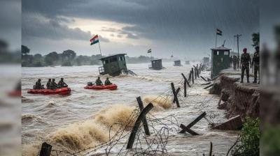 पाकिस्तान बॉर्डर पर लगी 30 किलोमीटर फेंसिंग तेज़ बहाव में बह गई, रावी नदी के उफान ने बीएसएफ की चौकियों को डुबो दिया
