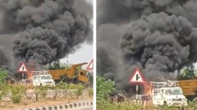 रोड मार्किंग मशीन में जोरदार ब्लास्ट, इलाके में मचा हड़कंप