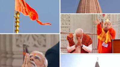 शुभ मुहूर्त में पीएम मोदी ने किया राम मंदिर शिखर पर ध्वज आरोहण