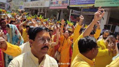 शहर में निकली भव्य कलश यात्रा, शिव महापुराण कथा शुरू
