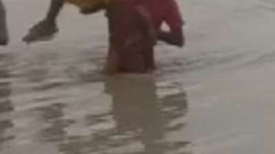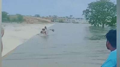 तीन फीट पानी में बह रही थी पुलिया, बाइक सहित परिवार फंसा, लोगों ने किया रेस्क्यू