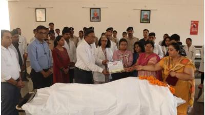 शिवपुरीः मध्य प्रदेश के शिवपुरी जिले में सोमवार को पहली बार किसी देहदान करने वाले को राजकीय सम्मान दिया गया। 78 वर्षीय दिवंगत सरोज मदान के पार्थिव शरीर को उनकी...
