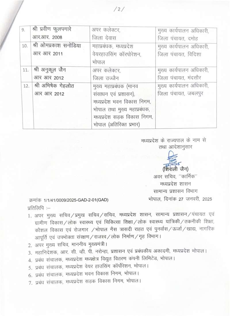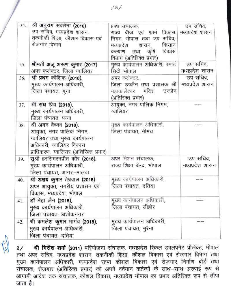 मध्य प्रदेश में 42 आईएएस अफसरों के तबादले, 12 जिला मजिस्ट्रेट बदले गए