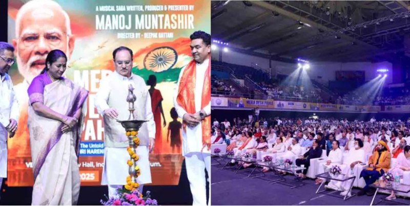 दिल्ली सरकार की ओर से प्रधानमंत्री नरेंद्र मोदी की जीवन यात्रा पर आधारित माई कंट्री फर्स्ट: द अनटोल्ड स्टोरी ऑफ नरेंद्र मोदी नाम से कार्यक्रम की संगीतमय प्रस्तुति का आयोजन गुरुवार (18 सितंबर) शाम 6 बजे इंदिरा गांधी स्टेडियम के केडी जाधव हॉल में किया गया. इस संगीतमय प्रस्तुति के जरिये पीएम मोदी के बाल्यकाल, किशोरावस्था, युवावस्था के साथ-साथ राजनीतिक संघर्ष से जुड़े सभी आयामों को प्रदर्शित किया गया. इस कार्यक्रम में बीजेपी के अध्यक्ष और स्वास्थ्य मंत्री जेपी नड्डा के अलावा दिल्ली की मुख्यमंत्री रेखा गुप्ता भी शामिल हुईं.