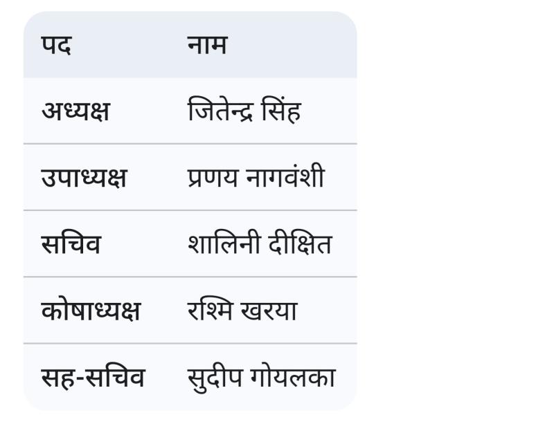घोषित परिणामों के अनुसार, संगठन के मुख्य पदों पर निम्नलिखित नियुक्तियां हुई हैं: