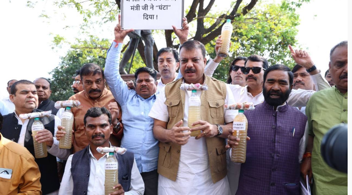 विधानसभा में “साफ पानी हमारा अधिकार” के नारे के साथ विरोध प्रदर्शन