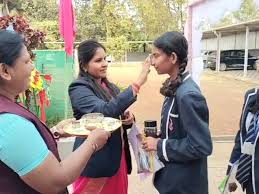 परीक्षा का पहला दिन: परीक्षार्थियों को टीका लगाकर दी गई शुभकामनाएं