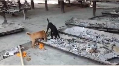 साहिबाबाद। उत्तर प्रदेश के साहिबाबाद स्थित हिंडन नदी के श्मशान घाट का एक वीडियो पिछले चार दिनों से सोशल मीडिया पर वायरल हो रहा है। इस वीडियो में आवारा कुत्ते चिताओं की अस्थियों और अवशेषों को खाते हुए दिख रहे हैं। यह घटना मृतकों के प्रति असम्मान की स्थिति पैदा कर रही है। अंतिम संस्कार के लिए आने वाले परिजनों की भावनाओं को भी गहरी ठेस पहुंच रही है। स्थानीय निवासी सुनील वैद ने इस संबंध में नगर आयुक्त को पत्र लिखा है। उन्होंने तत्काल कार्रवाई की मांग की है। वैद ने श्मशान घाट के चारों ओर मजबूत घेराबंदी या दीवार बनाने का सुझाव दिया है। इससे आवारा पशु अंदर नहीं आ सकेंगे। उन्होंने यह भी कहा कि यह समस्या लंबे समय से बनी हुई है। परिसर में सुरक्षा कर्मियों की तैनाती भी आवश्यक बताई गई है। नियमित साफ-सफाई और अवशेषों के उचित निपटान की व्यवस्था सुनिश्चित करने की मांग की गई है।