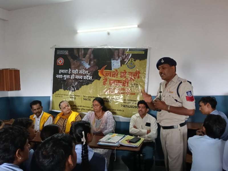 थाना और मीत संस्था के समन्वय से आज पीयूष पब्लिक हायर सेकेंडरी स्कूल खजूरी खजूरी कला में नशा रोकथाम को लेकर जागरूकता कार्यक्रम किया गया कार्टून बनाकर रंगोली बनाकर चित्रकला के माध्यम से नशे पर निबंध लिखवाने से जिसमे अवधपुरीथाने से प्रधान आर आशीष श्रीवास एवं थाने से पुलिस स्टाफ, मीत संस्थान से श्रीमती रेखा श्रीधर मैडम लाइंस क्लब से सीमा अग्रवाल मैडम 200 छात्र एवं छात्राएं उपस्थित रहे।