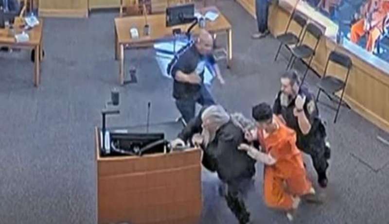 न्यू मेक्सिको में हत्या के एक संदिग्ध पर कथित तौर पर पीड़ित के चाचा और सौतेले पिता ने कोर्ट में हमला किया, ये पूरी घटना कोर्टरूम के वीडियो में कैद हुई है। वीडियो में मेक्सिको कोर्ट में हत्या के संदिग्ध पर पीड़ित के परिवार का हमला दिखाया गया है।