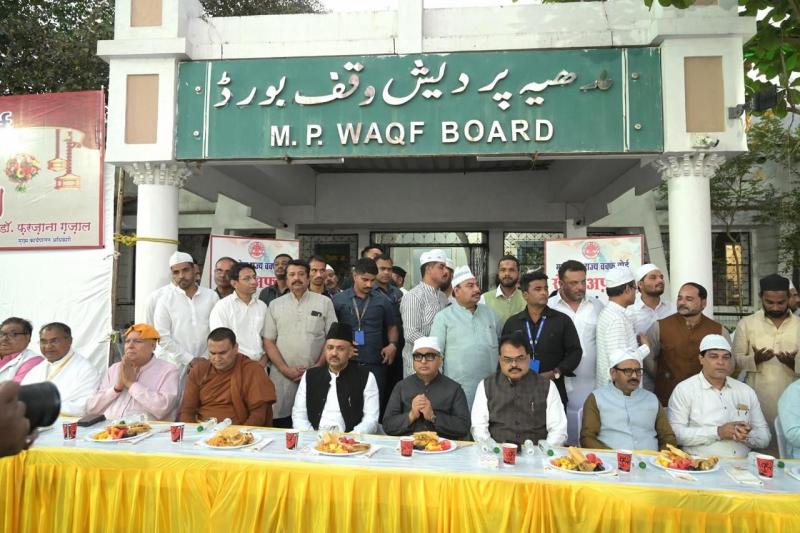 भोपाल। रमज़ान मुबारक के पवित्र माह में कार्यालय मध्यप्रदेश वक्फ बोर्ड के परिसर में दिनांक 10 मार्च 2026 को बोर्ड अध्यक्ष जनाब डॉ. सनवर पटेल द्वारा रोज़ा इफ्तार समारोह का आयोजन किया गया, जिसमें भा.ज.पा. अल्पसंख्यक मोर्चा के राष्ट्रीय अध्यक्ष जनाब जमाल सिद्दीक़ी, प्रदेष भर के गणमान्य नागरिकों एवं चारों धर्मां के धर्मगुरू एवं वक्फों के जिम्मेदारान, जिला वक्फ कमेटी के पदाधिकारीण, इलेक्ट्रानिक मीडिया, प्रिन्ट मीडिया एवं सोशल मीडिया के प्रतिनिधिगण की उपस्थिति में सम्पन्न हुआ।