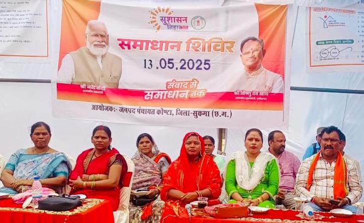 रायपुर : कलेक्टर देवेश कुमार ध्रुव के निर्देशन तथा मार्गदर्शन में सुकमा जिला के कोंटा विकासखंड के नक्सल प्रभावित अंदरूनी क्षेत्र पोलमपल्ली में सुशासन तिहार के अंतर्गत समाधान शिविर का आयोजन किया गया। कार्यक्रम में पोलमपल्ली, कांकेरलंका, कोर्रापाड़, पालामडलू और चिंतागुफा के ग्रामीण बड़ी संख्या में शामिल हुए।