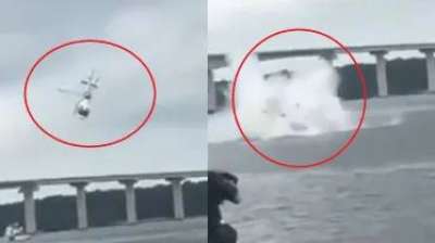 गश्त के दौरान हादसा: पुलिस का हेलिकॉप्टर नदी में गिरा
