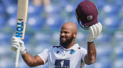 भारत की धरती पर 23 साल बाद वेस्टइंडीज ओपनर का शतक, अनोखे अंदाज में छक्का लगाकर बनाई सेंचुरी