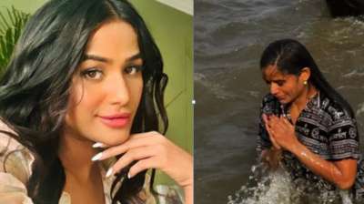मौनी अमावस्या के दिन पूनम पांडे ने लगाई संगम में डुबकी